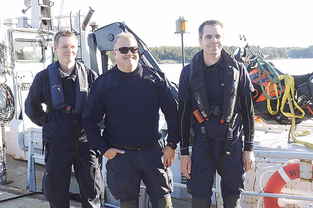– Lokalborna använder enslinjer som folk inte känner till och tack vare dem kan vi ta oss iland. När vi gick in här första gången lade vi till vid Waxholmsbryggan eftersom vi kände att det var alldeles för grunt. Vi i Sjövärnskåren kommer att notera enslinjerna för att inte gå på grund när man kallar på oss. Det här är ett typexempel på hur samverkan ska fungera och hur viktigt det är att öva så att vi kan ta del av kunskaper som lokalborna har, säger Fredrik Carle.